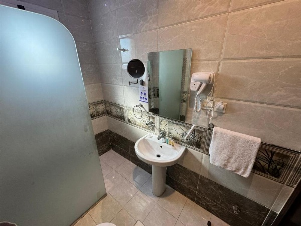 The gallery section of Primotel Suites As Salamah showcases its modern, traditional, and family-friendly atmosphere and amenities. The images emphasize the beautifully furnished family air-conditioned rooms with comfy bedding, a shared lounge, modern furnishings, and tidy private bathrooms equipped with complimentary toiletries, providing an exceptional experience to guests staying near Jeddah Corniche.